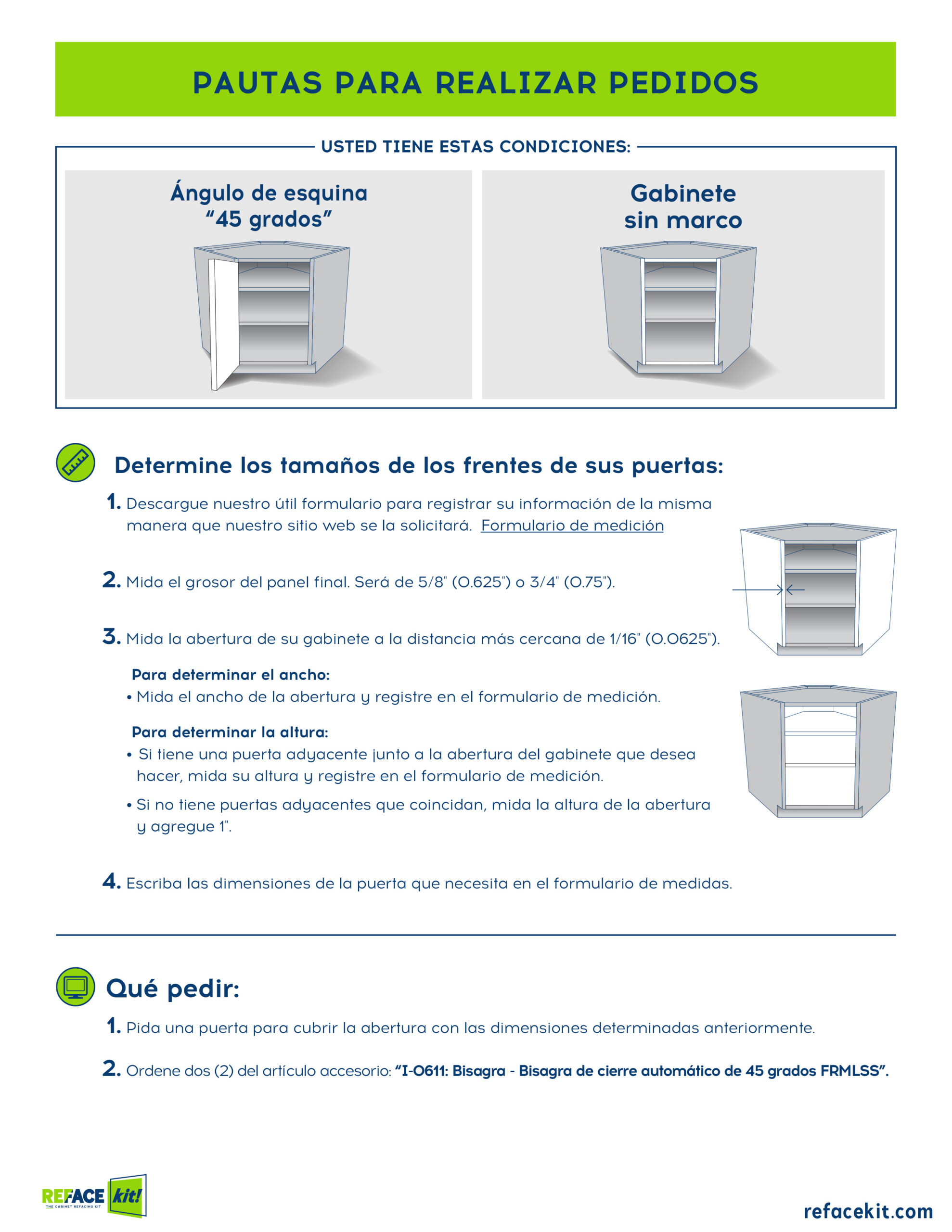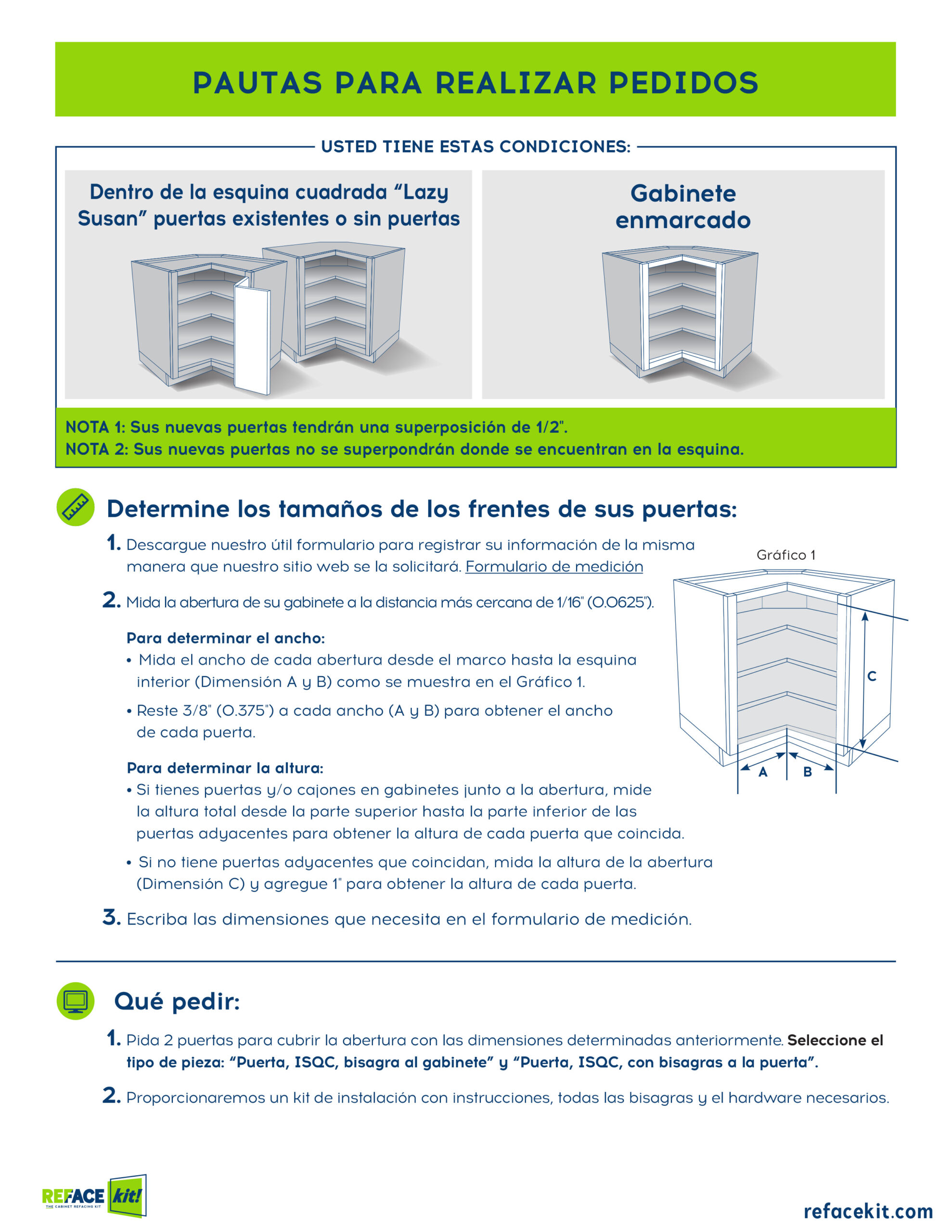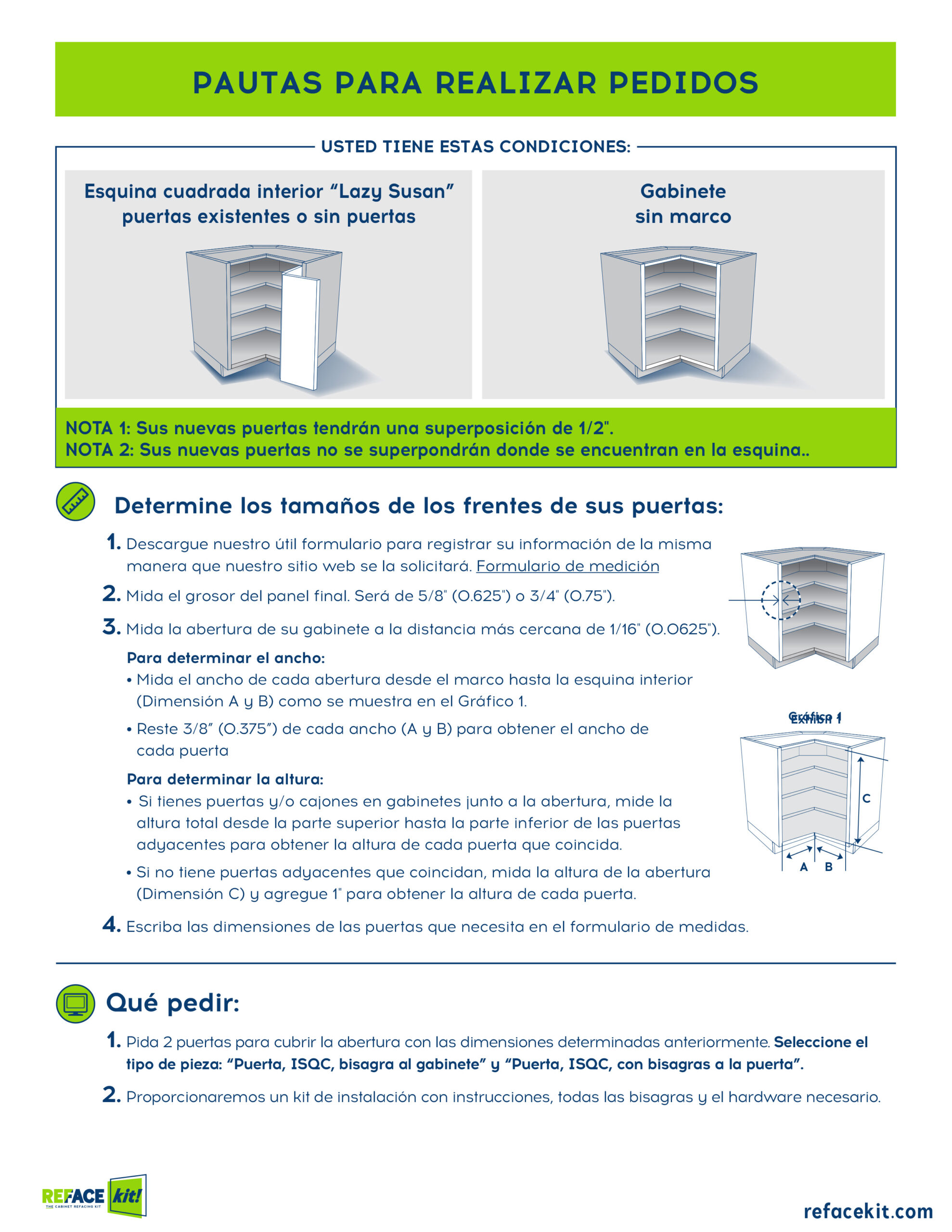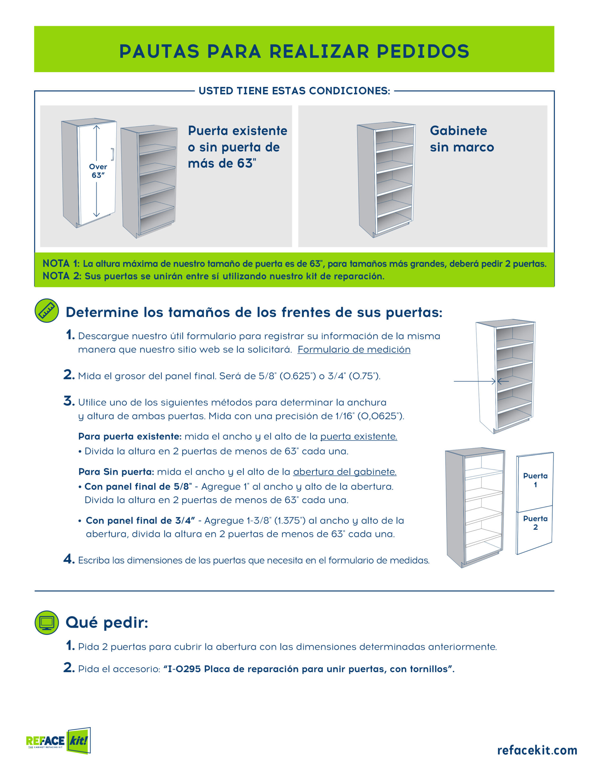 We’ve provided a collection of guidelines to help you order doors for specific types of cabinets. Go to the Download Center below or use the RefaceKit guide tool to step through specific questions that let us provide guidelines tailored to your specific needs.